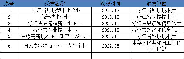 公司先后获有中华人民共和国特种设备生产许可证TS、美国石油协会API 6D认证、API 607球阀防火认证、欧盟 CE认证、安全完整性等级SIL3认证、ISO9001:2008质量管理体系认证、ISO14001:2004环境管理体系认证、GB/T28001-2011职业健康安全管理体系认证;同时取得中石化、国电集团、华能集团、华电集团、大唐集团、中电投集团、中广核集团、神华集团、中国化工集团、中粮集团、中国建筑集团、国家能源集团、浙江能源集团、中国能建集团、中国电建集团等几百家央企、国企、集团合格供应商;并被授予国家高新技术企业、浙江省科技型企业、温州市科技创新企业、2018年温州市高成长型企业、2018年温州市“亩均论英雄”企业、温州市企业技术研究开发中心、重合同守信用A级单位、银行信用AAA级企业、浙江省优质产品称号、温州市知名商标、中阀协会员单位、温州市阀门协会和龙湾区阀门协会副会长单位等众多荣誉。